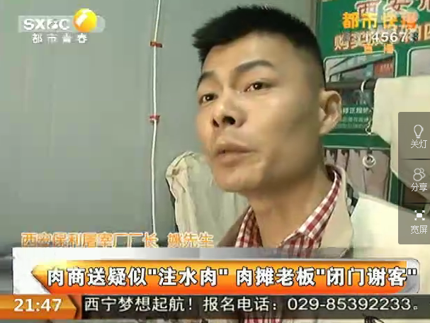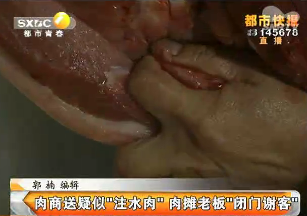 肉商送疑似“注水肉” 肉攤老板“閉門謝客”陜西都市青春頻道報(bào)道,轄區(qū)內(nèi)肉商肉商送疑似“注水肉” 肉攤老板“閉門謝客”