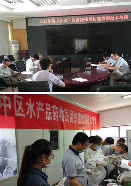此次培訓(xùn)一是介紹了2015年吳中區(qū)水產(chǎn)品藥物殘留快速檢測工作在全省的績效考評結(jié)果及存在的問題;二是布置2016年的快速檢測任務(wù)及工作要求;三是發(fā)放實驗耗材。