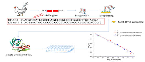 針對抗生素殘留檢測的新技術平臺,面對藥物殘留檢測的巨大需求和不斷增長的技術發(fā)展需要,西北農(nóng)林科技大學動物藥學團隊(陜西省獸用生物制品與新獸藥研究國際科技合作基地)經(jīng)過多年努力,建立了較為成熟的基于禽源基因工程抗體的系列免疫學檢測方法。近日,該團隊的部分研究成果以題為“Preparation of a chicken scFv to analyze gentamicin residue in animal derived food products”的論文在線發(fā)表于2016年3月16日的美國化學會會刊分析化學(Analytical Chemistry)雜志上,張小鶯教授為通訊作者,2014級碩士二年級研究生李翠為第一作者。