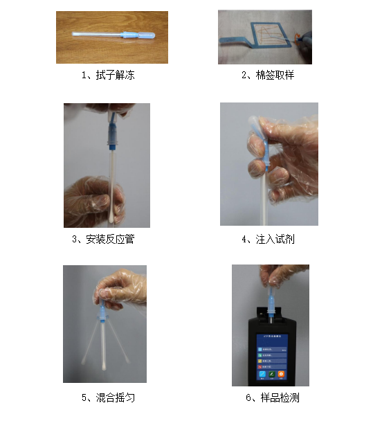 采用化學(xué)反應(yīng)檢測ATP,用拭子采集標(biāo)本,拭子被緩沖液浸濕,這樣有助于從干燥或濕潤的表面提取生物物質(zhì)(ATP)。拭子也含有一種可以沖破生物膜的試劑,使其下可能存在的生物體暴露出來。標(biāo)本采集后,拭子應(yīng)浸泡在能將細(xì)胞內(nèi)ATP釋放出來的容劑中。而后細(xì)胞內(nèi)部釋放出的ATP、以及拭子從設(shè)備表面抹取的ATP再拭子獨(dú)特的液體試劑一起反應(yīng)。拭子的液體試劑含有兩種螢火蟲酶---熒光素和熒光素酶,蟲熒光素和蟲熒光素酶在ATP存在的條件下會發(fā)光。發(fā)出的光可由冠宇儀器ATP熒光檢測儀進(jìn)行檢測。檢測的發(fā)光量與ATP的總量成正比。數(shù)值越高,表明ATP的量越多,也就意味著表面的殘留物越多。